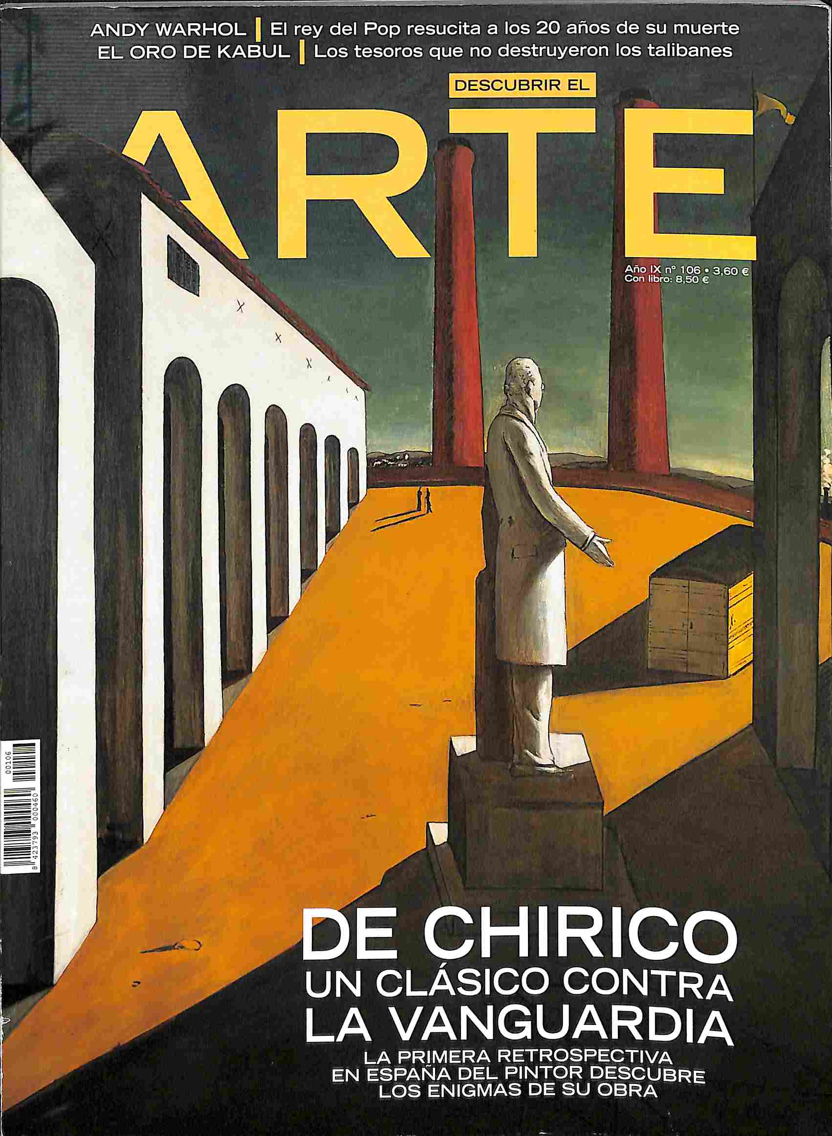 Contiene: De Chirico, un clásico contra La Vanguardia, la primera retrospectiva en España del pintor descubre los enigmas de su obra; Andy Warhol, el rey del Pop resucita a los 20 años de su muerte; El Oro de Kabul, los tesoros que no destruyeron los talibanes