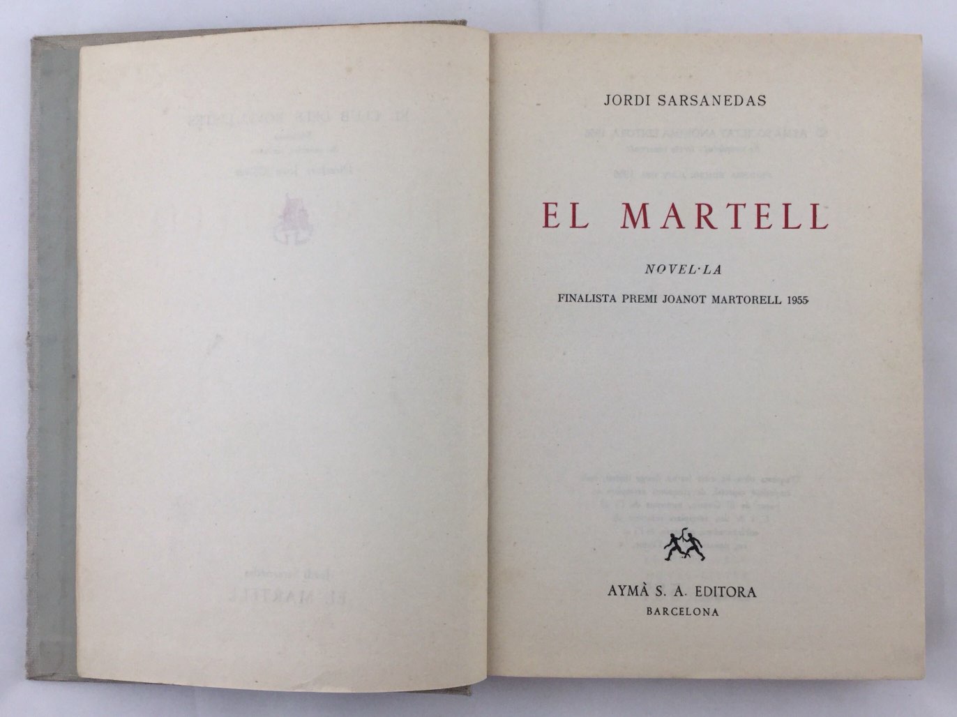 Finalista premi Joanot Martorell 1955. El club del novel.listes, 3. Biblioteca de novel.les catalanes. Tirada limitada, ejemplar 587. Tela editorial