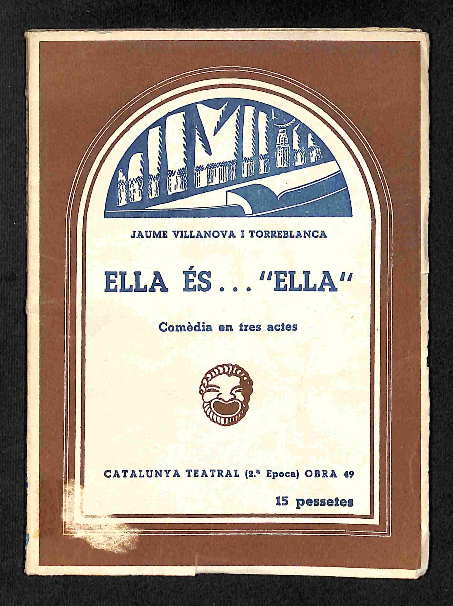 Sello anterior biblioteca; Anotado por el antiguo propietario; Incluye reproducción de dos fotografías del estreno de la obra en el Teatre Romea de Barcelona; Exlibris impreso de Jaume Villanova.