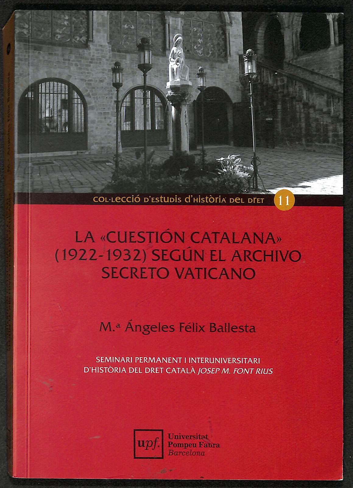 Estudio sobre la “cuestión catalana” (1922-1932) elaborado a partir de documentación del Archivo Secreto Vaticano, con enfoque histórico-jurídico eclesiástico.
