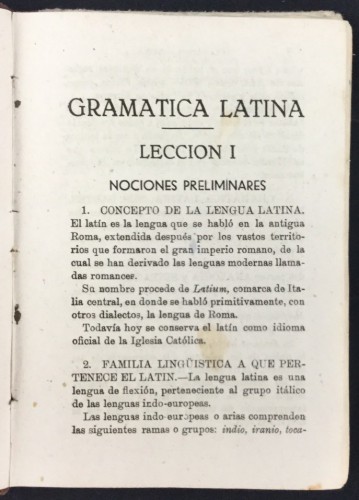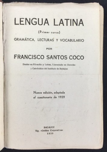 Lengua latina, primer curso, gramática, lecturas y vocabulario