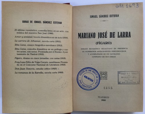 Mariano José de Larra (Fígaro) : ensayo biográfico redactado en presencia de numerosos antecedentes desconocidos y acompañado de un catálogo completo de sus obra
