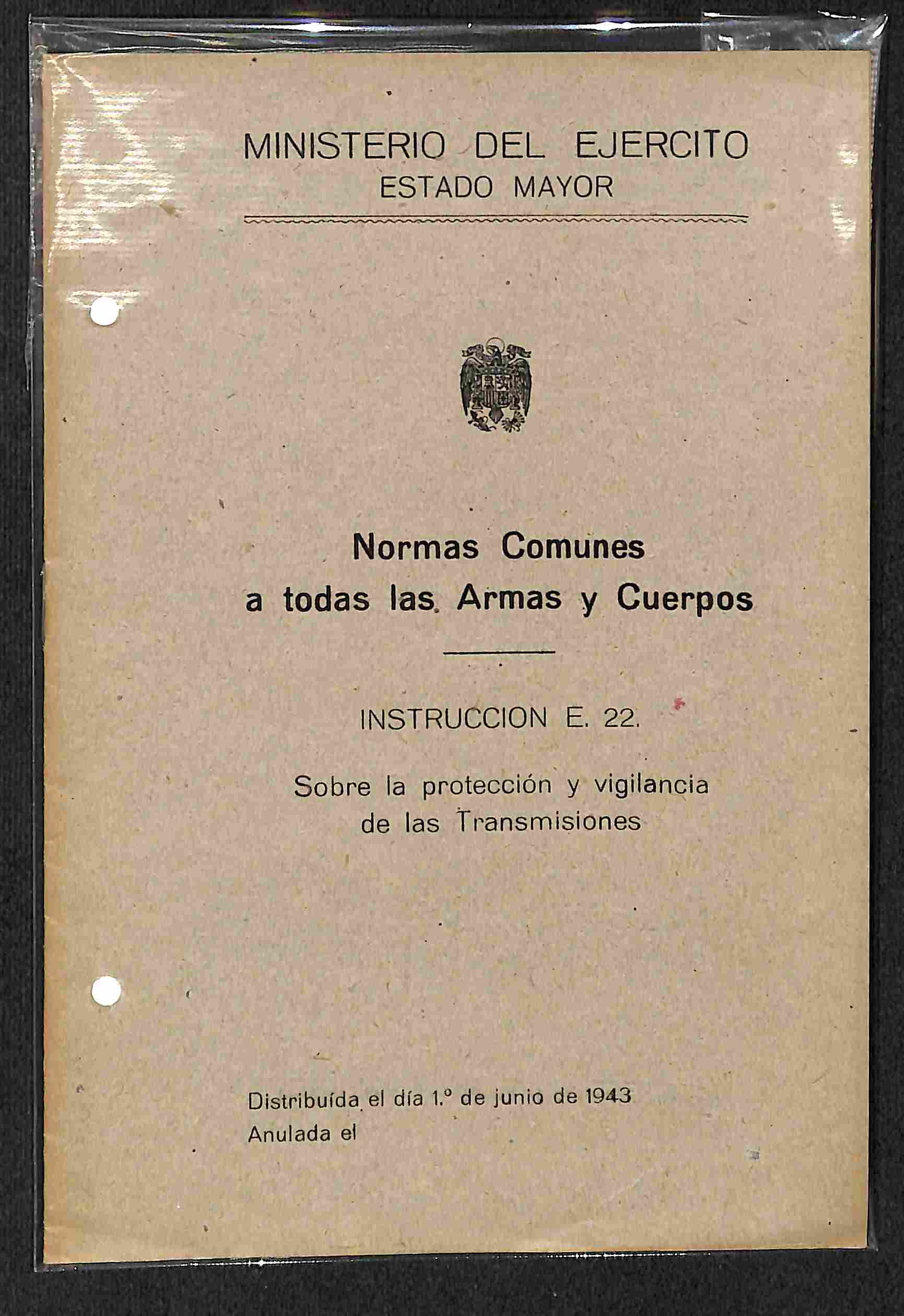 Normas comunes a todas las Armas y Cuerpos. Instrucción E. 22: sobre la protección y vigilancia de las transmisiones
