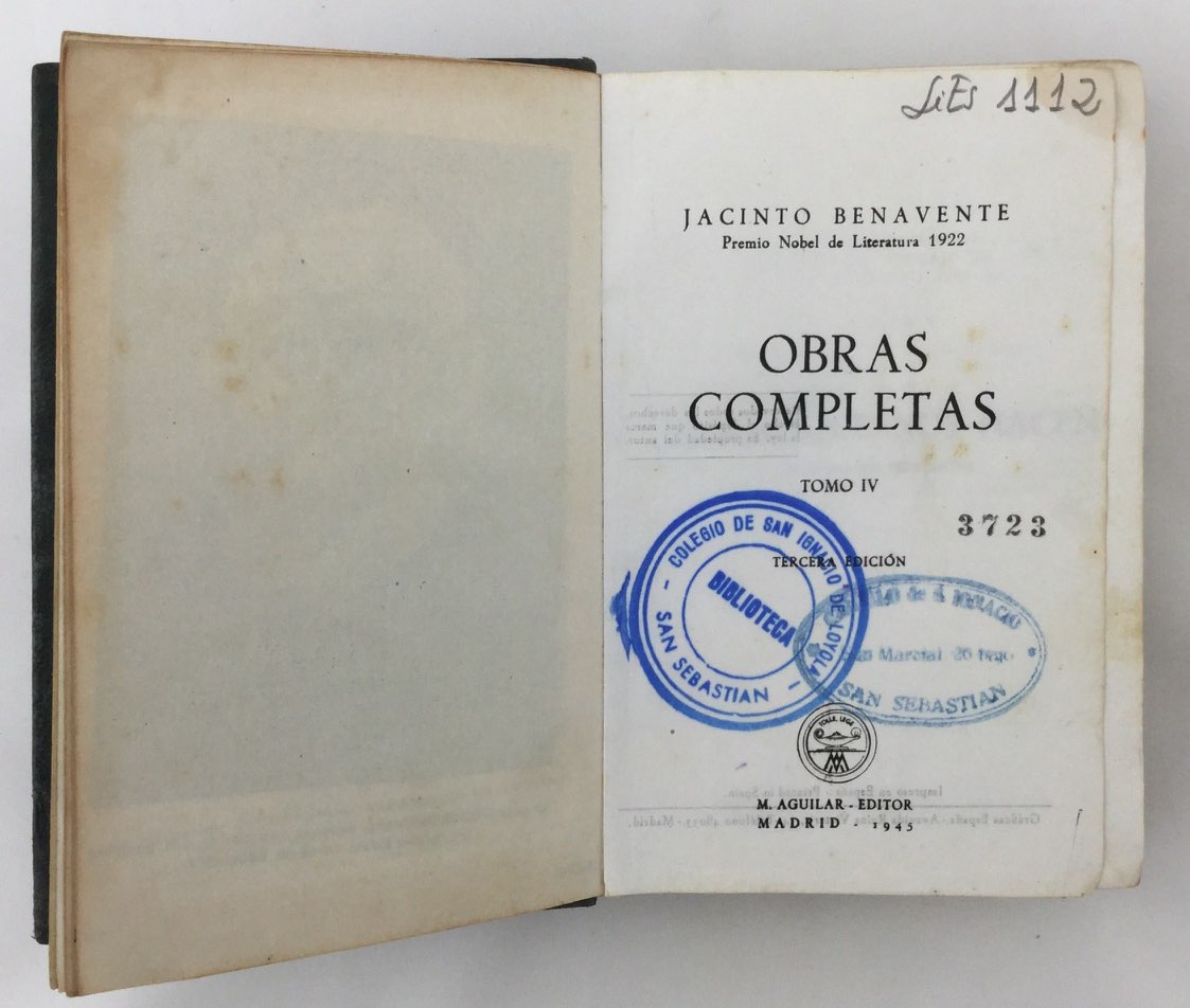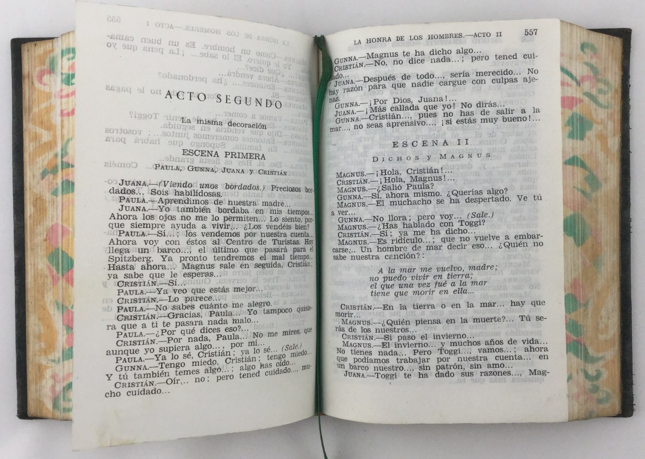 Cortes decorados. Cinta de lectura. Sellos anterior biblioteca. CONTENIDO: El mal que nos hacen. Los Cachorros. El Rey Lear (Traducción). Caridad. Mefistófela. La Inmaculada de los Dolores. La Ley de los hijos. Por ser con todos leal, ser para todos traidor. La vestal de Occidente. La honra de los hombres. La Cenicienta. Y va de cuento. Una señora. Una pobre mujer. Más allá de la muerte. Por qué se quitó Juan de la bebida. Lecciones de buen amor. Un par de botas. Alfilerazos. La otra honra. La virtud sospechosa. Nadie sabe lo que quiere o El bailarín y el trabajador. Si creerás tú que es por mi gusto. Los nuevos yernos. El suicidio de Lucerito